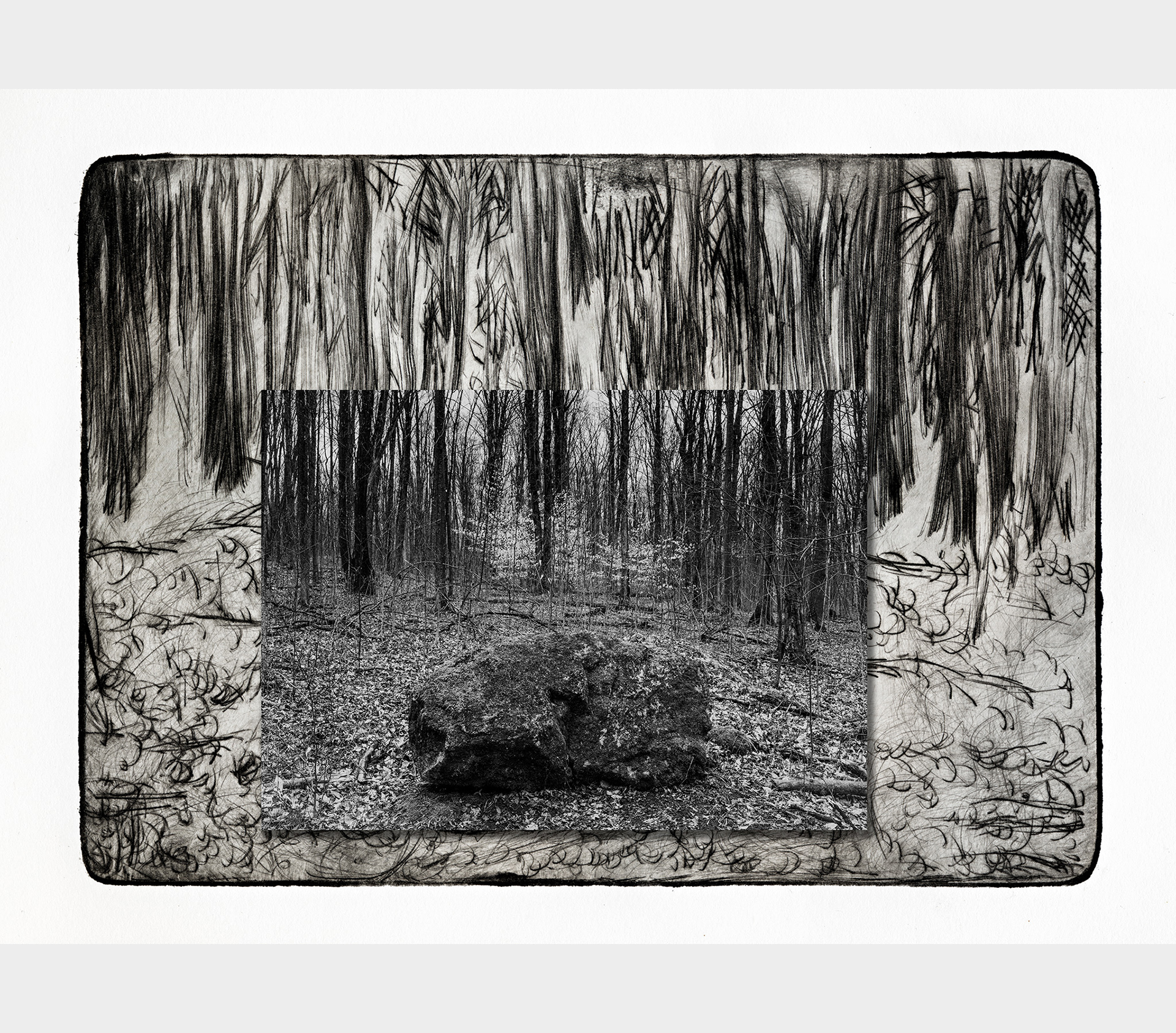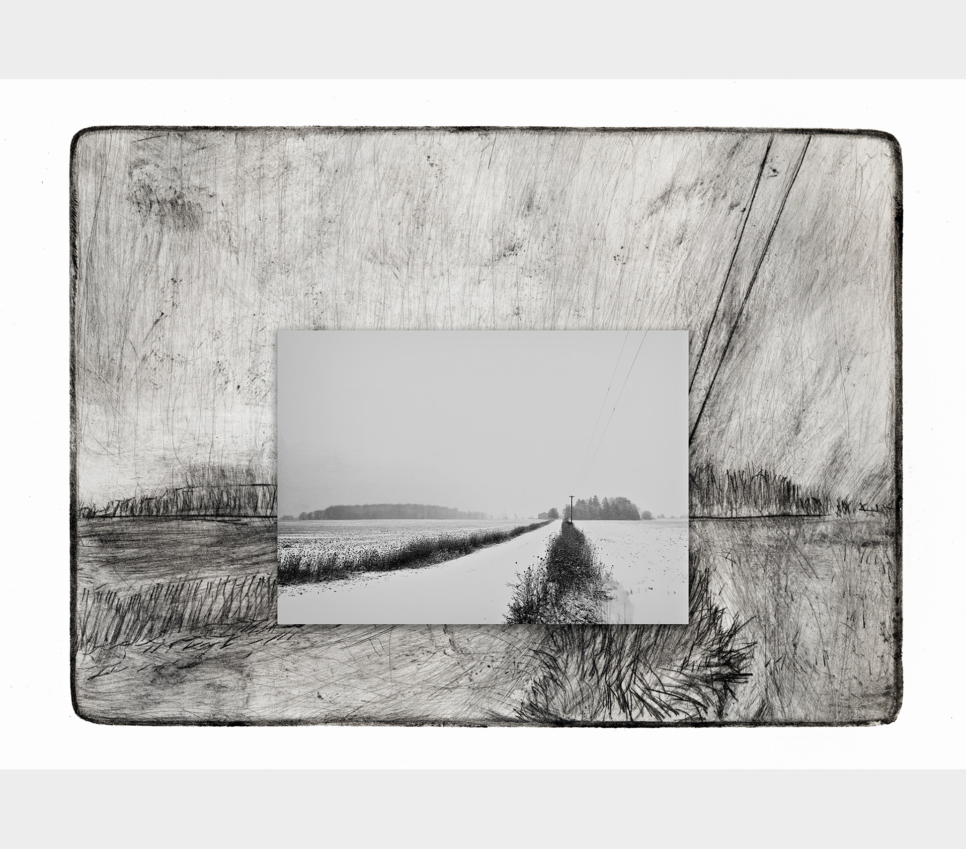 Photography and intaglio meet — the lens and the etched plate speaking in different dialects of the same vision.